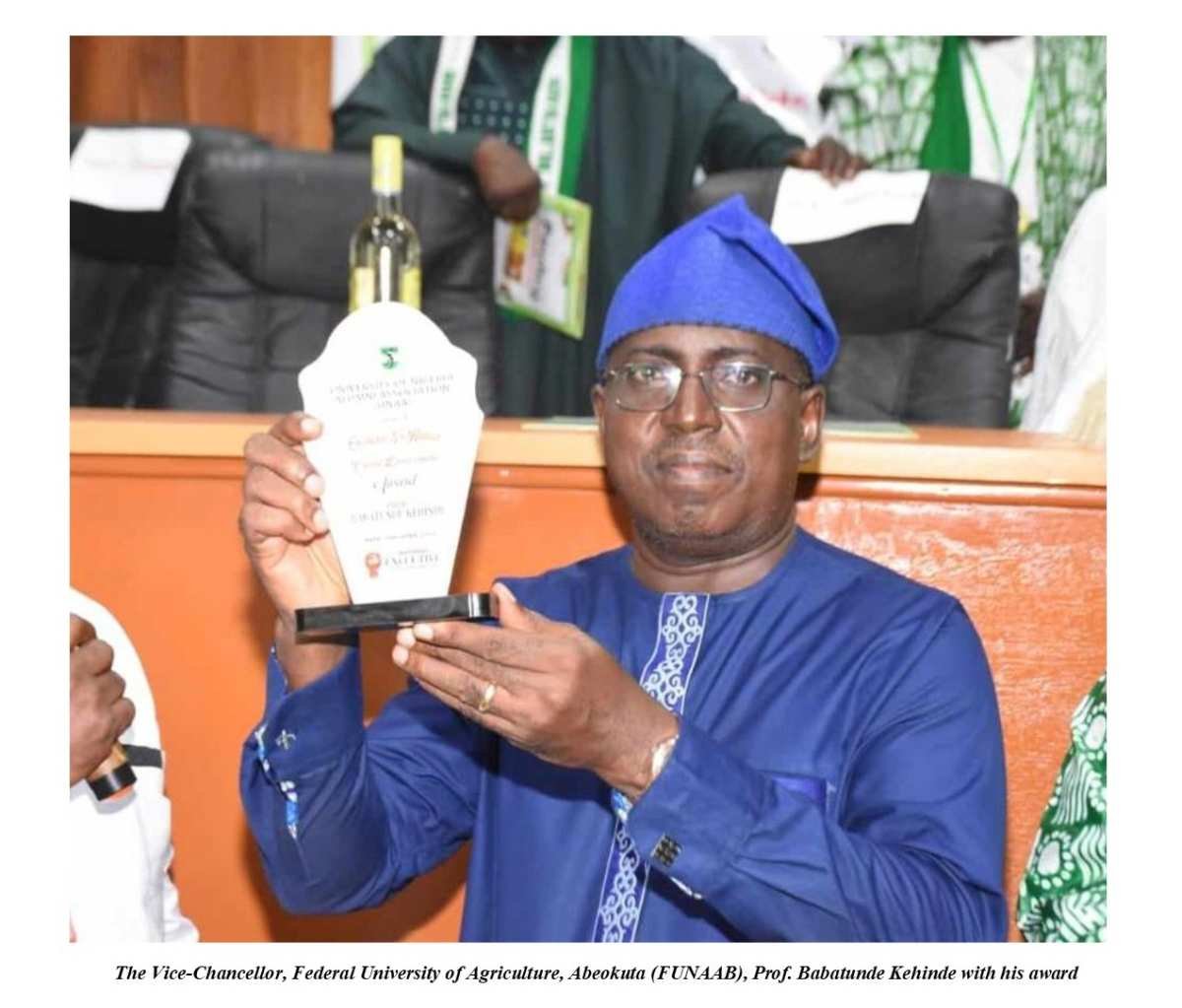 The Vice-Chancellor, Federal University of Agriculture, Abeokuta (FUNAAB), Prof. Babatunde Kehinde on Saturday, April 20, 2024 bagged the prestigious Excellence in Human Capital Development Award at the 109th National Executive Council (NEC) Meeting of the University of Nigeria Alumni Association (UNAA), held at the Green Chamber.