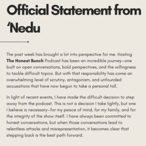 In a statement released on Instagram on Friday, Nedu said his decision to step down was influenced by growing scrutiny and accusations, which he described as baseless.